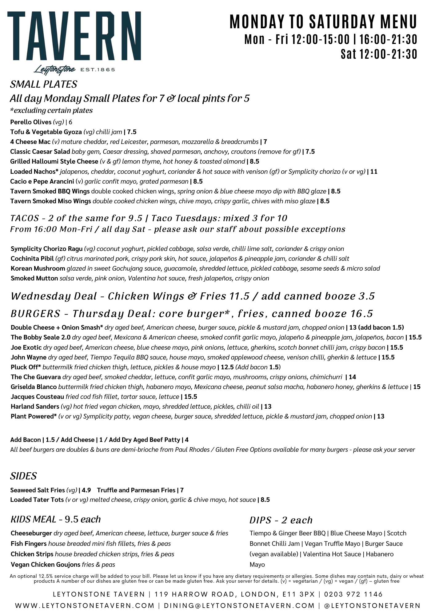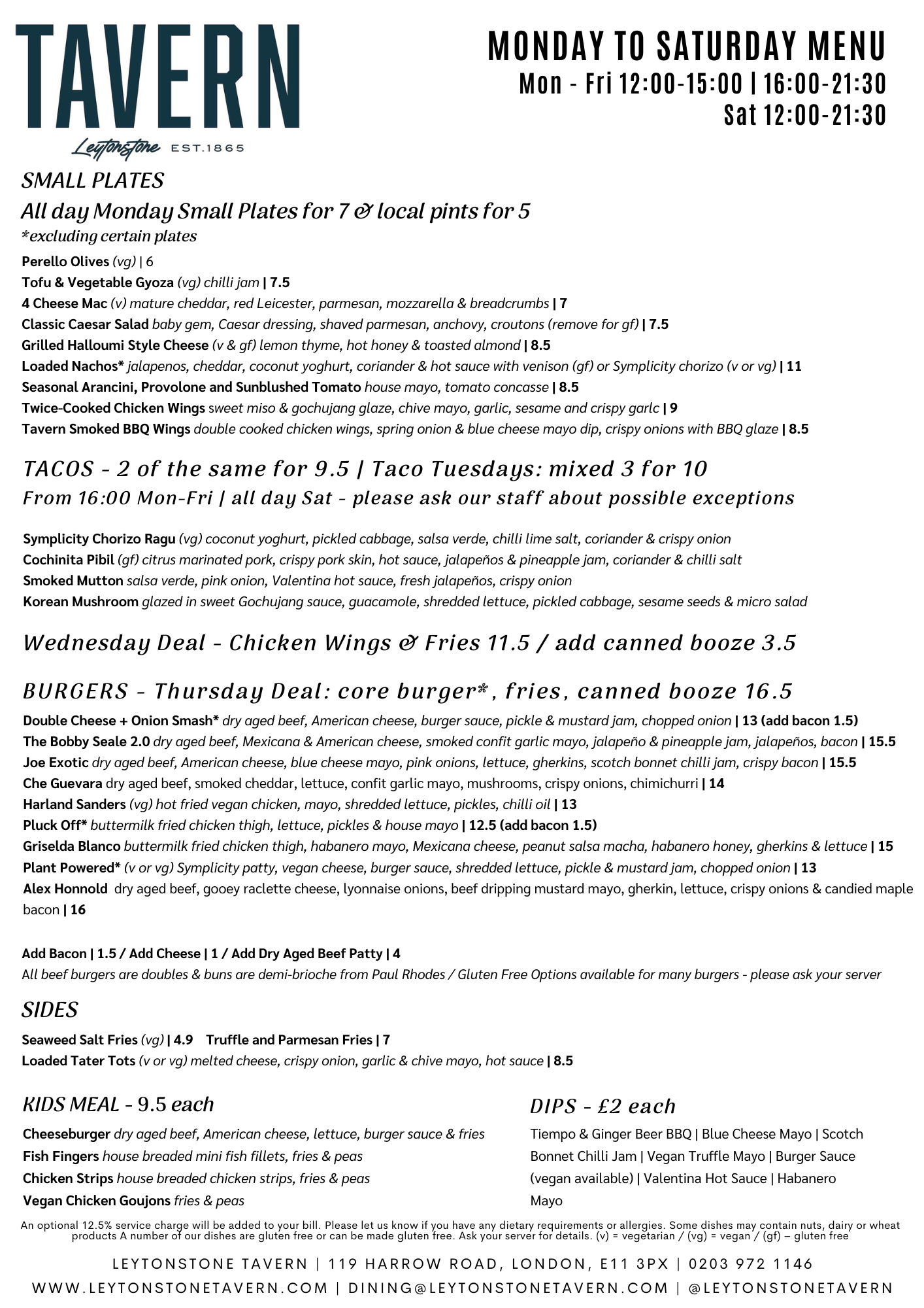 Mon - Fri 12 - 3pm & 4 - 9.30pm